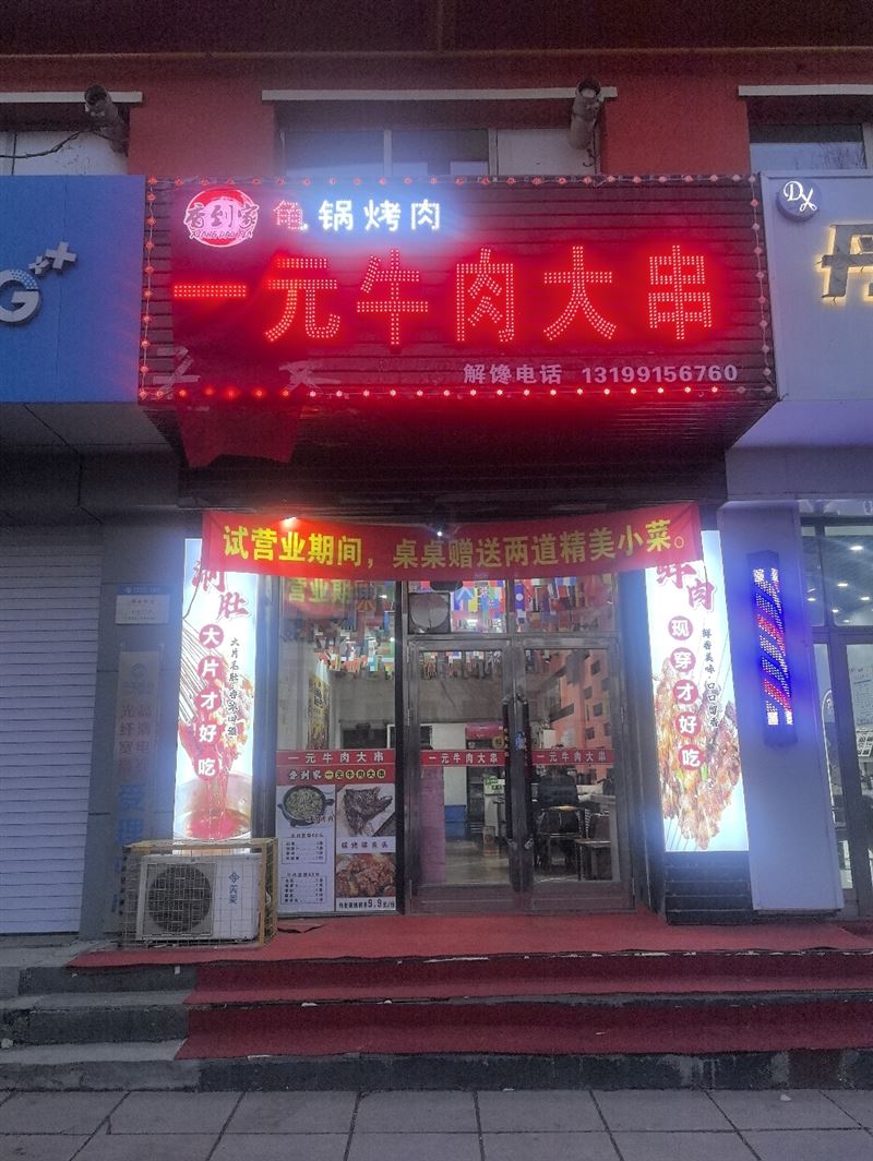 奥林新村营业中烧烤店..